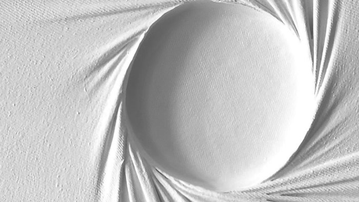 “La tela bianca, vuota, in attesa di essere lavorata, non è un semplice supporto bidimensionale bensì è il portale d’ ingresso al mio spazio-tempo.