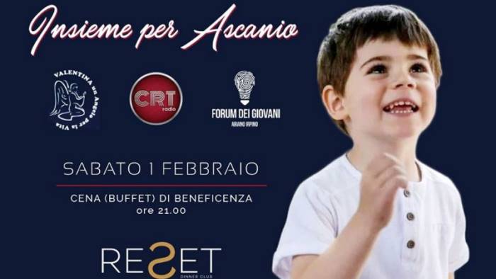 Sabato 1 febbraio, una serata speciale, una cena di beneficenza dedicata al piccolo Ascanio. Gli organizzatori: "Inizieremo alle ore 21:00 con una cena buffet al costo di 15€. La cena sarà allietata dallo staff della radio Crt. A seguire dj Set e divertimento.