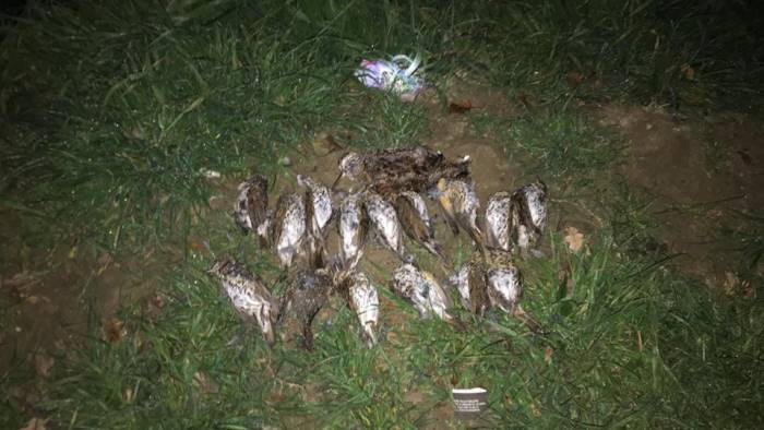 Beccaccia e tordi, a terra in bella mostra, messi quasi appositamente in fila, tra i rifiuti ingombranti a Santa Maria a Tuoro.