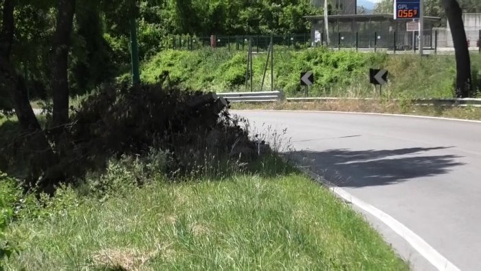 Si agisca presto, prima che sia troppo tardi. Per colpa di quei tronchi, qualcuno potrebbe rimetterci la vita su questa strada. Il Comune è avvisato.