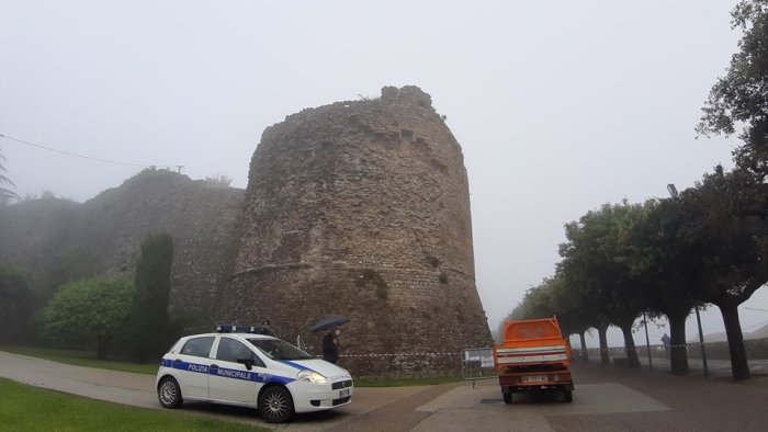 Una pietra è volata improvvisamente giù dalla sommità di una delle quattro torri del castello normanno di Ariano Irpino, a pochi metri dall'ingresso principale della villa comunale che affaccia sul piazzale Lusi. E' successo questa sera. Fortuna ha voluto che al momento della caduta non si trovasse nessuno di passaggio, tenuto conto della giornata particolarmente piovosa. Ma è stato proprio uno degli assidui frequentatori a segnalare il pericolo alla polizia municipale che a sua volta ha allertato l'ufficio tecnico comunale. Un tecnico reperibile è giunto immediatamente sul posto ed ha ordinato a scopo precauzionale di transennare l'area interessata da possibili nuovi distacchi, a causa delle evidenti infiltrazioni di acqua. Nella giornata di domani si procederà ad una ispezione più approfondita con l'ausilio di un cestello gru, per rimuovere eventuali situazioni di pericolo.