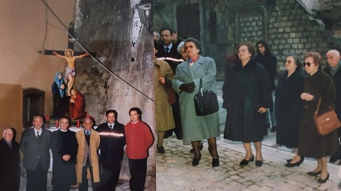 Da via del Riscatto a via Tranesi, passando per vicoletti, rioni e contrade. Sono tante le edicole votive e i crocifissi sparsi lungo le strade. La foto ritrovata tra i ricordi dei nonni da Ilenia Marano si riferisce al crocifisso anni fa restauraro lungo la "Carnale" a ridosso della Basilica Cattedrale. E' tra i più belli della città. Volti di donne e uomini d'altri tempi che non ci sono più ma che hanno reso grandi quei luoghi. Ogni edicola, ogni cappella o crocifisso ha una sua storia da raccontare, spesso familiare, legata a grazie ricevute. Un percorso bello e ricco di emozioni. Luoghi della memoria che racchiudono un legame antico, una grande devozione popolare nel ricordo della passione e morte di Cristo e di un Ariano che fu.