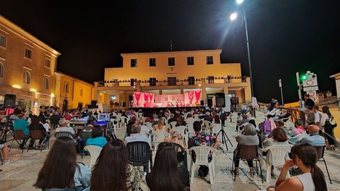 Non c'è stata la rievocazione storica del dono delle sacre spine e nessuna manifestazione musicale. Ma nel salotto della città non poteva mancare il teatro. E' stato subito un successo per la rassegna estiva promossa dal Comune con la direzione artistica della compagnia SulReale. Ad aprire le danze la divertentissima commedia della compagnia arianese Luciano Li Pizzi "Cuticone vuleva giustizia" diretta magistralmente da Luigi Pietrolà. Domani alle ore 21.30 di scena la "Artemanus" con la commedia Tonino Cardamone, giovane in pensione.