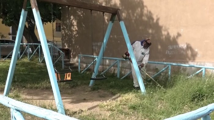 Lui è Paolo De Gruttola, persona poliedrica, simpatica, socievole con tutti ma soprattutto innamorato profondamente della sua città. Lo abbiamo visto raccogliere lattine e bottiglie in villa comunale, liberare segnali nascosti dalla vegetazione, sistemare transenne e oggi con tanto di tuta e decespugliatore all'opera nel rione Rodegher per liberare dalle erbacce le due aree riservate ai bambini, dove qualche residente aveva segnalato la presenza di topi.