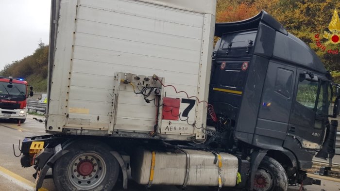 Pioggia battente, raffiche di vento e disagi anche in autostrada. Alle ore 12'35 di oggi 4 novembre, i Vigili del Fuoco di Avellino, sono intervenuti sull'autostrada A 16, Napoli - Canosa, al Km. 37,300 in direzione Canosa, nel territorio del comune di Monteforte Irpino, per un incidente stradale che ha visto coinvolto un autoarticolato. Alla guida del pesante automezzo proveniente da Napoli e diretto a Lecce, che non trasportava nulla, un uomo di origini albanesi di 43 anni, il quale oltre un forte spavento non ha subito grosse conseguenze. Il veicolo è stato rimosso liberando la carreggiata in direzione Sud, che è rimasta chiusa durante le operazioni di soccorso.