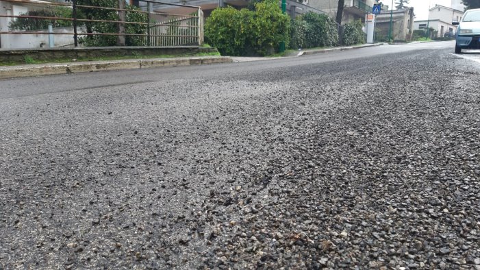 La strada recentemente rifatta dopo una lunga ed estenuante attesa, proteste e polemiche, sembra accusare già qualche acciacco. E sarebbe davvero una beffa se l'asfalto dovesse risultare fatiscente, in così poco tempo dalla sua realizzazione, per l'esattezza sei mesi fa.