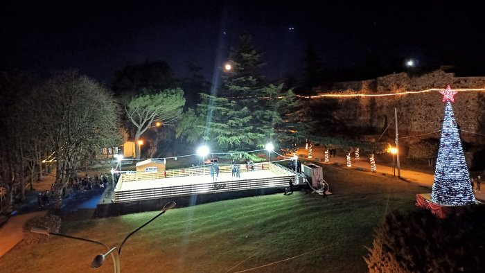 Già a partire dalla giornata di ieri, domenica 19 dicembre, e lungo tutte le festività e ben oltre, la chiusura è prevista per il 16 gennaio 2022, ad Ariano Irpino si è aperta la pista di pattinaggio sul ghiaccio presso l’ingresso principale della suggestiva villa comunale. Il bel colpo d'occhio, in questa foto scattata dall'alto da Sergio Formato.