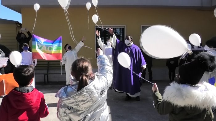 Palloncini bianchi verso il cielo in segno di speranza per invocare la pace. Striscioni e pensieri scritti dai bambini. In ogni angolo del mondo si prega per la fine della guerra. Una celebrazione semplice e significativa, quella che si è svolta ad Ariano Irpino in contrada Tesoro.