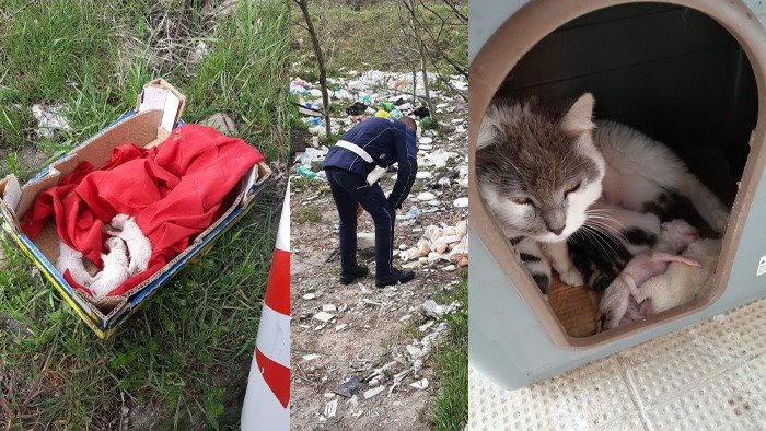 Li hanno abbandonati con l'intento di lasciarli morire tra i rifiuti in quello scempio senza fine di nome Tesoro ad Ariano Irpino dove oramai si è superato vergognosamente ogni limite. Ma una pattuglia della polizia municipale non è rimasta insensibile. Non poteva. E così gli operatori hanno prelevato i tre gattini e affidati subito a Bianca, una mamma gatta, fortunatamente già in fase di allattamento a casa di uno dei due agenti, ora attentamente accudita dalla piccola Emma.