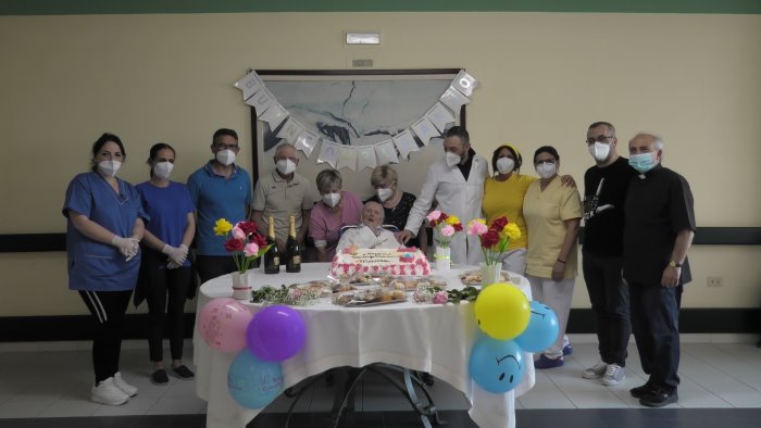 Un evento straordinario di longevità, festeggiato all'interno del centro Minerva ad Ariano Irpino. E' qui che Maria insieme alle sue adorate figlie Elena ed Angela e al personale della struttura ha brindato da vera guerriera all'invidiabile traguardo. In video chiamata con gli altri figli lontano dalla sua Ariano sparsi in Italia e nel mondo ha trascorso anche quest'anno una giornata memorabile con tanto di torta e spumante circondata dall'affetto del team Minerva. Accudita amorevolmente da chi opera con grande impegno e abnegazione all’interno della Rsa, madre di dieci figli, di cui otto viventi, ci ha lasciato con una nuova promessa, quella di rivederci ancora il prossimo anno.