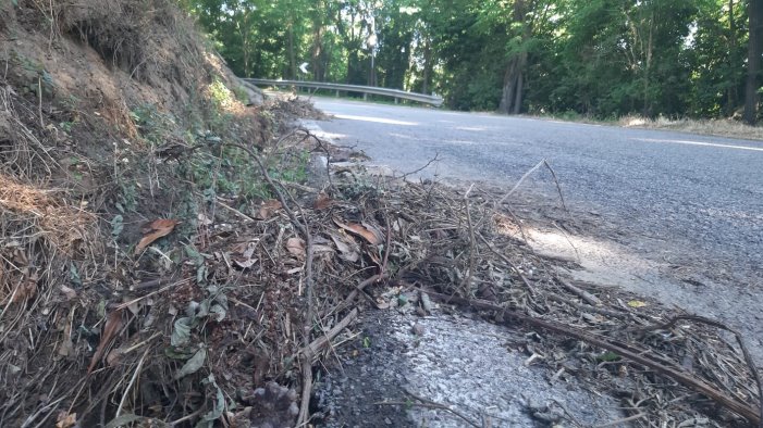Erba tagliata e lasciata a bordo strada sulla provinciale 414