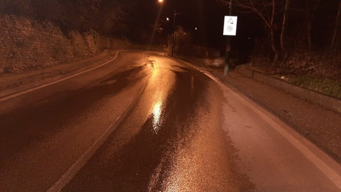 Ha superato oramai davvero ogni limite fino a rappresentare un serio pericolo per la pubblica incolumità l'enorme perdita di acqua lungo la strada che da via Nazionale porta via Sant'Antonio all'altezza del fosso Madonna dell'Arco e a ridosso del zona a valle del boschetto Pasteni.