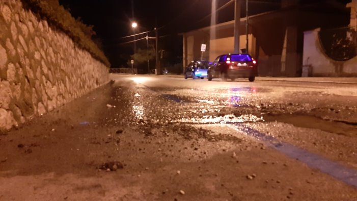 La fuoriuscita di acqua ha determinato anche un cedimento della sede stradale. Buche che stanno causando non pochi disagi agli automobilisti in transito. Nelle prossime ore è prevista la riparazione che inevitabilmente richiederà l'interruzione dell'erogazione idrica nella parte alta della città.