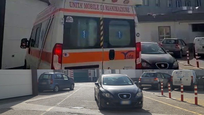 Un'auto, chiusa a chiave è stata lasciata per ore a centro strada, lungo il tragitto che porta all'ingresso del pronto soccorso.
