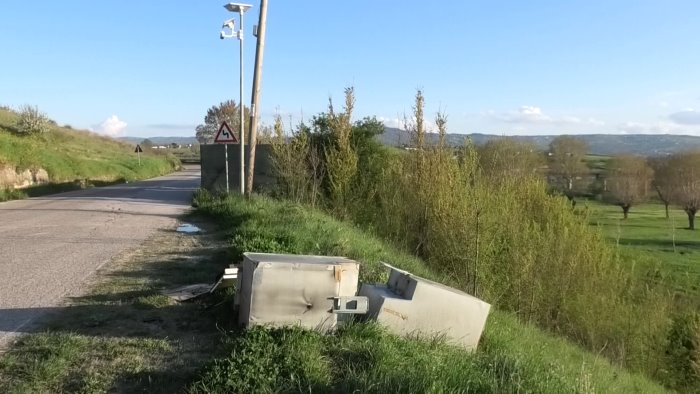 Hanno abbandonato rifiuti ingombranti in una cunetta, poco distante dalla struttura che ospita i cassonetti, in barba alle telecamere presenti.