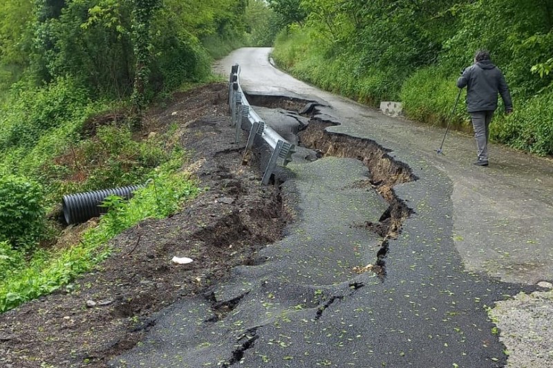 Ora la strada è letteralmente crollata ed necessario intervento di contenimento strutturale della stessa.