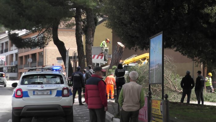 Il grosso tronco è stato tagliato e sezionato gradualmente dalla squadra intervenuta, munita di cestello onde evitate un impatto violento sull'asfalto.