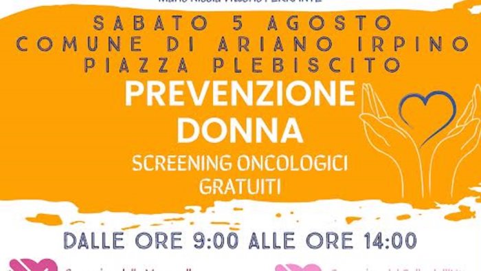 Sabato 5 agosto le unità mobili dell’ASL faranno tappa in Piazza Plebiscito ad Ariano Irpino. Dalle ore 9.00 alle ore 14.00 sarà possibile aderire allo screening gratuito della mammella, per le donne dai 50 ai 69 anni, e del collo dell’utero, per le donne dai 25 ai 64 anni, senza prenotazione con accesso diretto ai Camper dell'ASL.