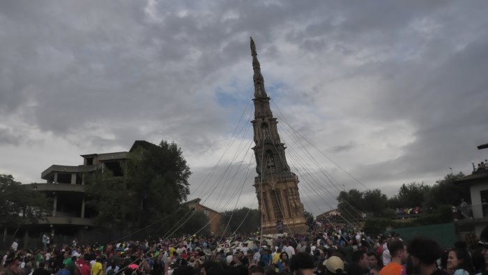 Sua maestà il carro di Mirabella, spazza via la pioggia e arriva a destinazione superando ogni ostacolo e paura dovuta alle frequenti inclinazioni nei punti più critici lungo il tragitto. Una manifestazione blindata ancora più degli altri anni, con una presenza massiccia di persone addette alla sicurezza, e volontari, misericordia, protezione civile ed altre associazioni in ausilio ai carabinieri.