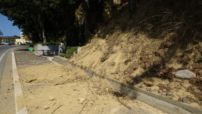 Più di un masso è già finito sul marciapiede della statale 90 delle puglie insieme al terreno che continua a scivolare lentamente.