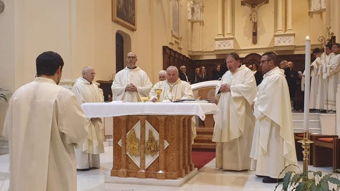 Ieri 20 novembre alle ore 18:00 a Sant’Angelo dei Lombardi, nella Cattedrale dedicata a S. Antonino Martire, si è tenuta presieduta da S.E.Mons. Pasquale Cascio, Arcivescovo e con il Parroco don Piero Fulchini, Mons. Tarcisio Gambalonga con circa 20 sacerdoti della Diocesi, presenti alcuni diaconi, seminaristi e ministranti, tra i canti del Coro Diocesano, una Concelebrazione Eucaristica.