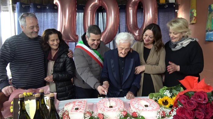 E' stato lo stesso primo cittadino a tagliare la torta insieme a lei e a chiederle il segreto dei 100 anni. La risposta? Rapida, esaustiva: "Ho mangiato, bevuto e lavorato. Vivo in una conca d'oro, ho voluto bene il prossimo e il prossimo vuole bene a me".