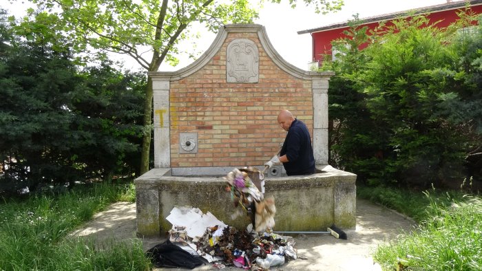 Storica fontana piena di rifiuti, un cittadino stanco di vederla in questo stato si arma di scopa, pala e guanti e la ripulisce totalmente. E' quanto accaduto in via Villa Caracciolo ad Ariano Irpino, di fronte a due istituti scolastici.