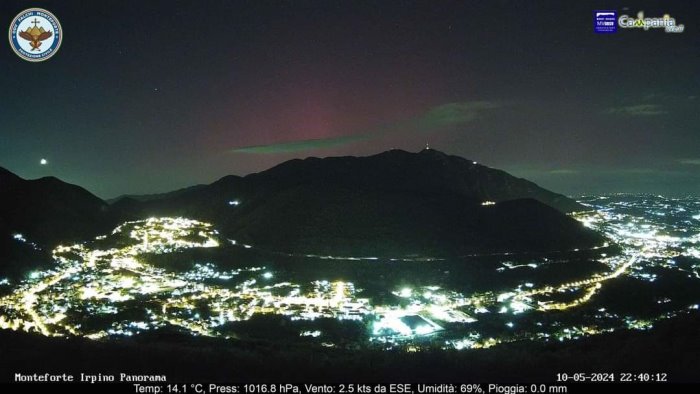 Spettacolare e insolito fenomeno alle nostre latitudini nella serata di venerdì 10 maggio 2024. Sono tantissime le immagini circolate sui social dopo le 21 quando il cielo in molte zone in Italia si è colorato di rosso, in diverse tonalità a seconda dell’intensità del fenomeno osservato. Tutto merito di una tempesta geomagnetica che sta interessando la Terra. E l'incanto luminoso ha premiato anche i cieli irpini. A pubblicare lo scatto incantevole è l'Osservatorio di Montevergine e la foto , postata sulla pagina social, ha raccolto tantissimi like e condivisioni. "Una rarissima aurora boreale è quella visibile dai cieli della nostra regione in queste ore serali del 10 maggio 2024. Anche la webcam curata dall'Associazione Falchi Monteforte, che ringraziamo, ha immortalato un magnifico scatto alle 22.30", scrivono gli esperti dell'Osservatorio di Montevergine, che rilanciano lo scatto. Questa volta il fenomeno era molto atteso dagli appassionati visto che era stato annunciato a causa della tempesta geomagnetica che sta colpendo la terra in queste ore e che ha reso l'aurora boreale visibile a insolite latitudini in diverse parti d'Europa.