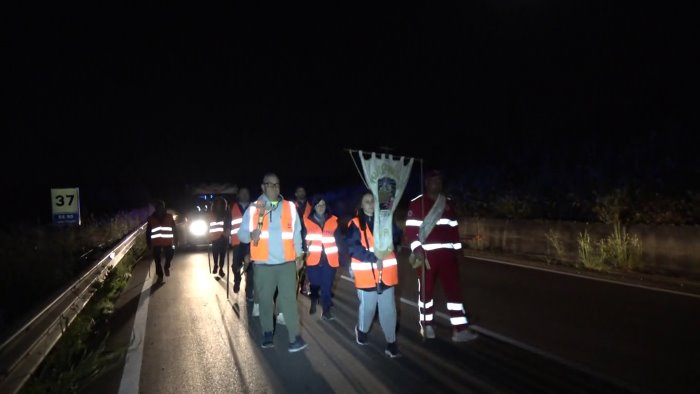 Sono partiti alle 20.30 di ieri sera da Villanova del Battista, per raggiungere a piedi il Santuario dell'Incoronata a Foggia. Arrivo previsto oggi alle 18.00 con la l'accoglienza e la celebrazione liturgica. Si tratta del 154° pellegrinaggio, lungo circa 75 chilometri nel segno della fede e devozione. Le immagini sono state girate nei pressi dello scalo di Savignano, alla località Ponte Gonnella. Devoti scortati e assistiti dai carabinieri e dalla croce rossa di Villanova del Battista.