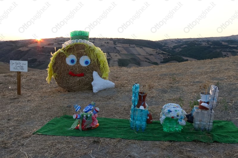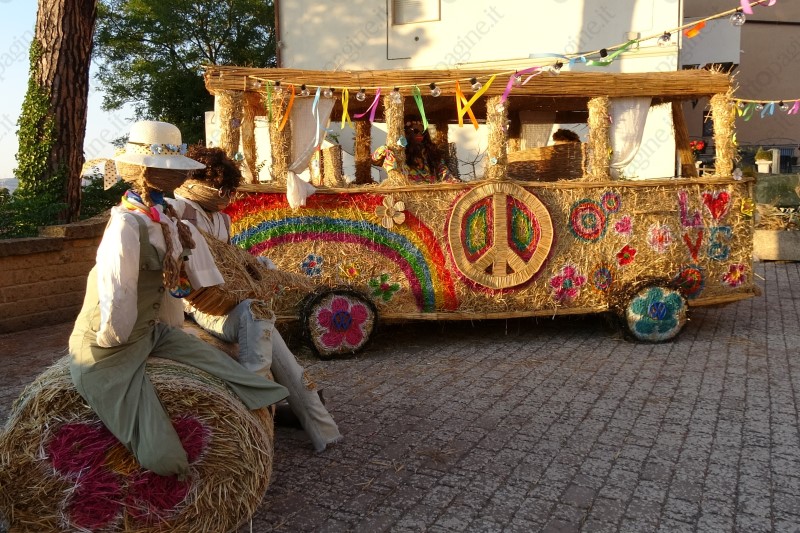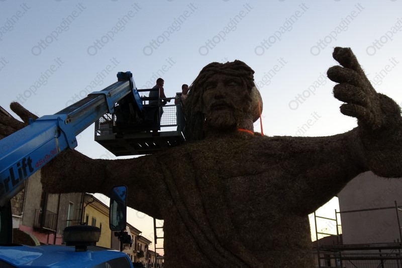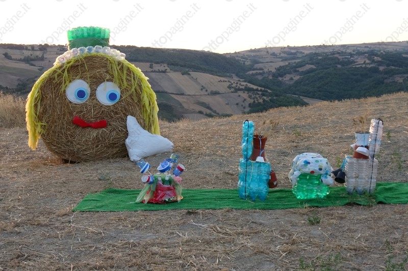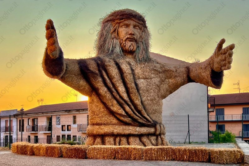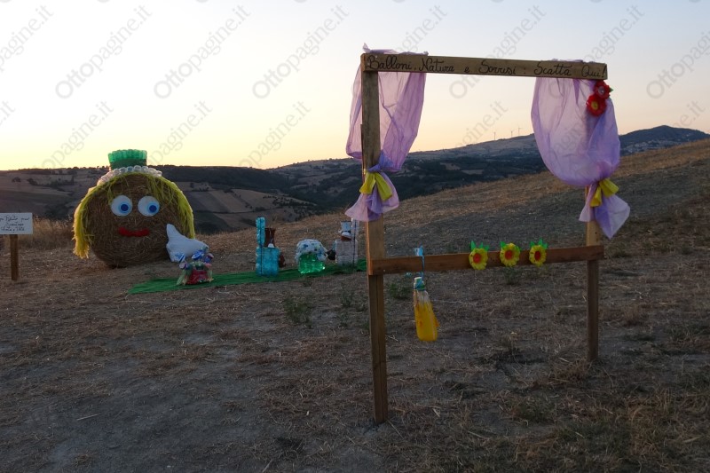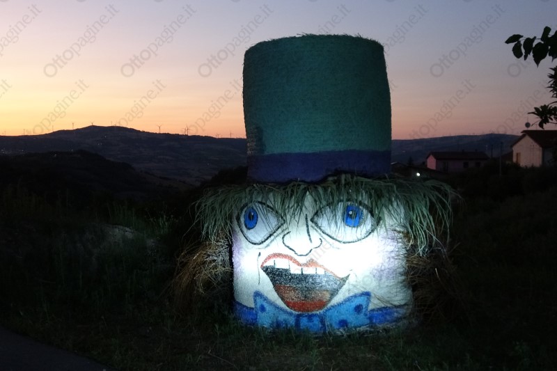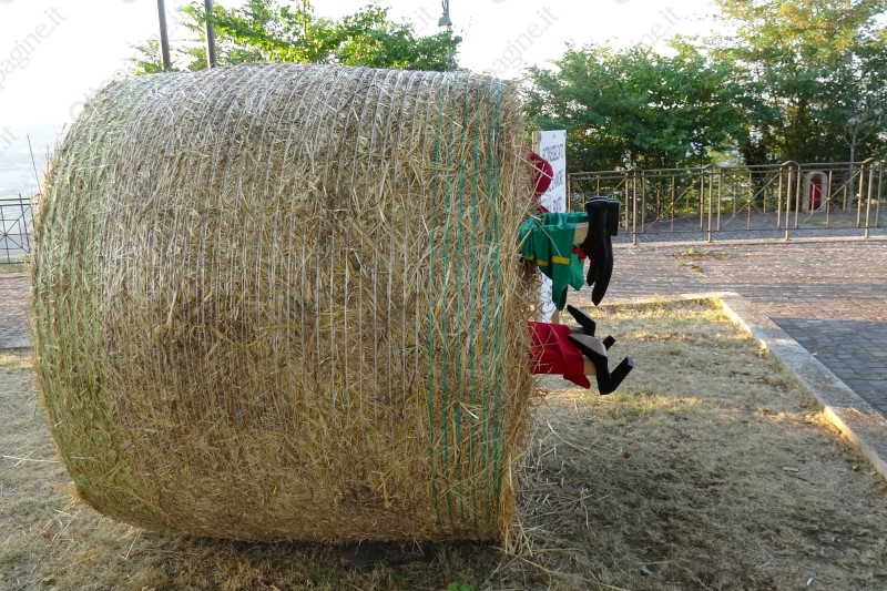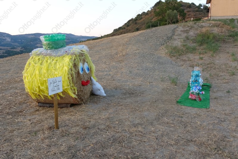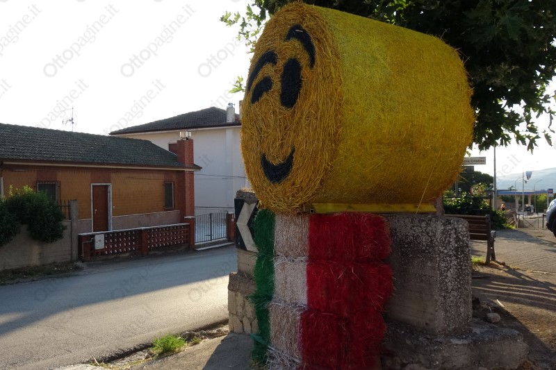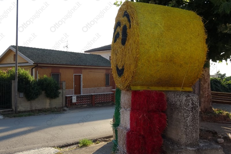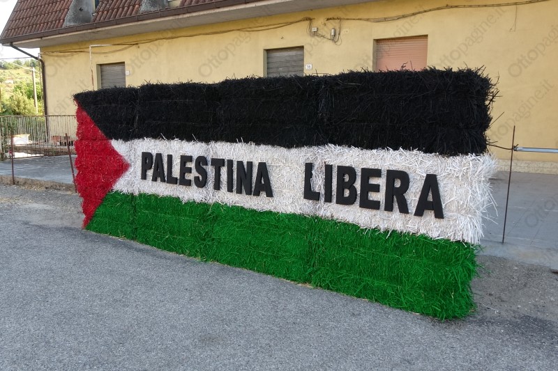 Rotoballe di paglia decorate, casette, il volto del grande redentore, solo per citarne qualcuna e fuori concorso anche un'opera dedicata alla Palestina, all'ingresso del paese, mai come in questo momento di grande attualità.