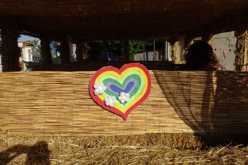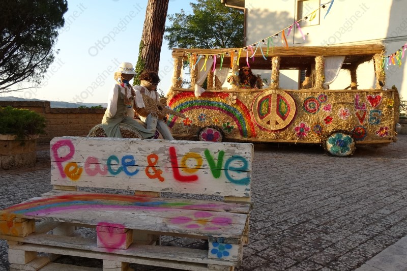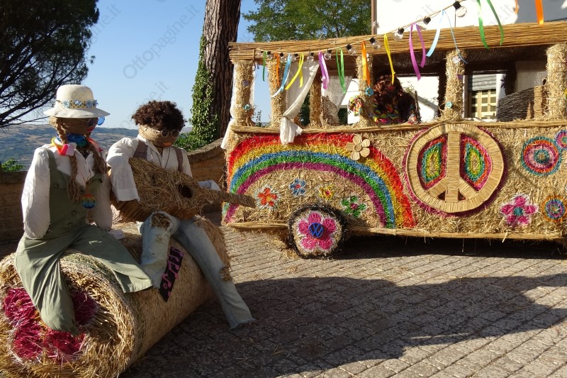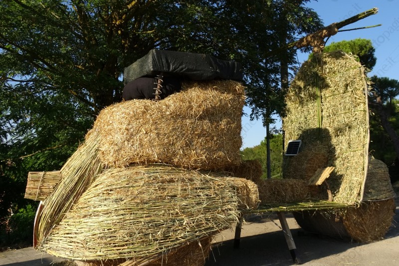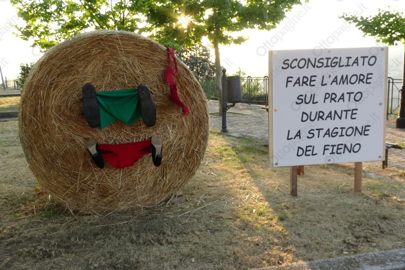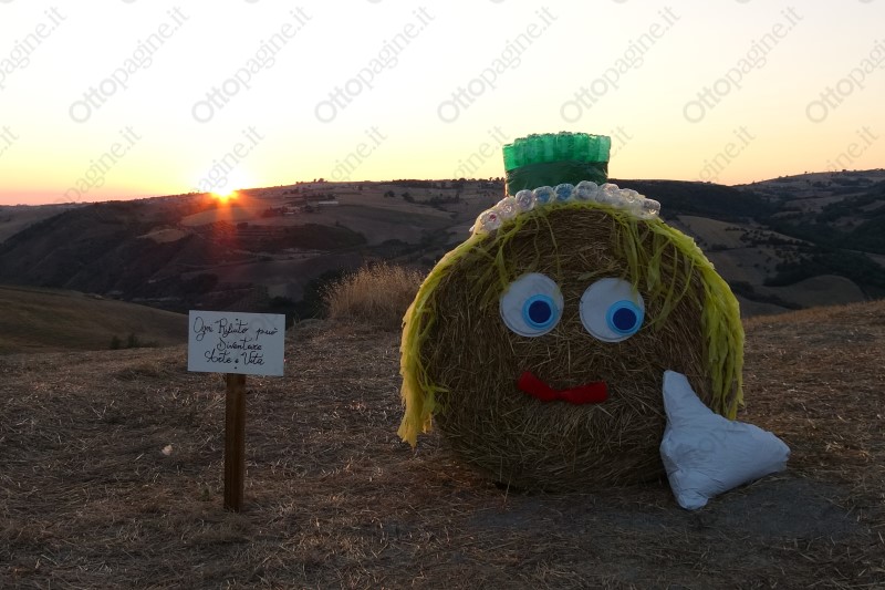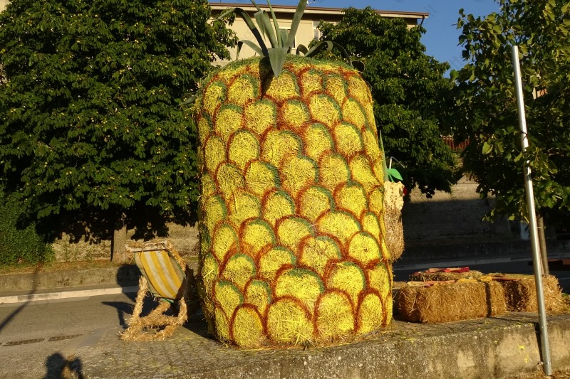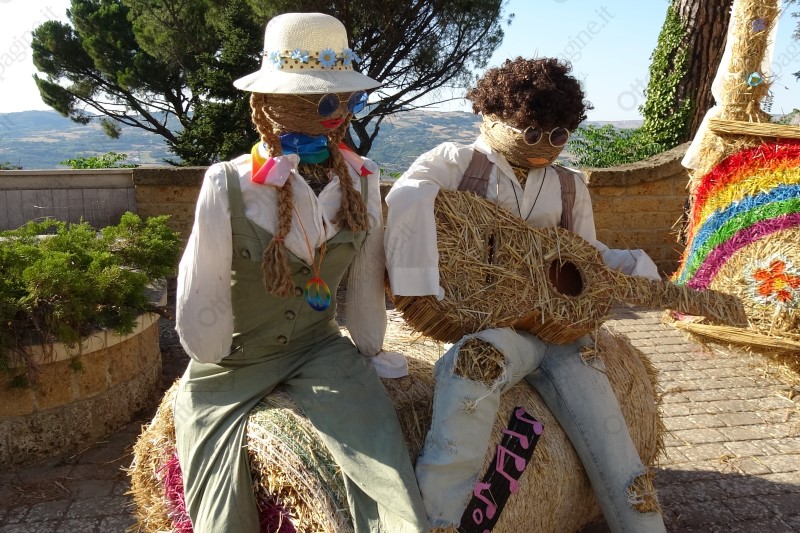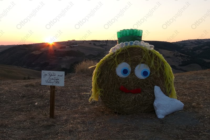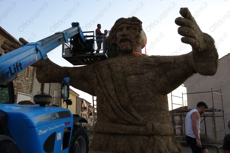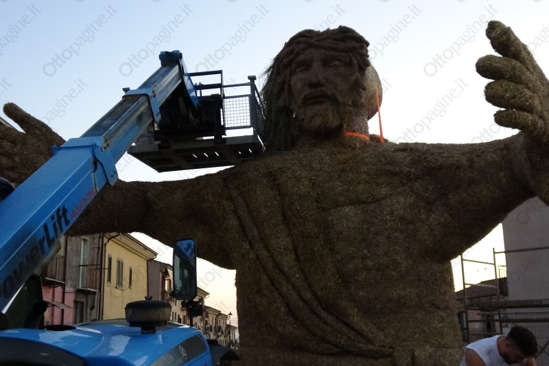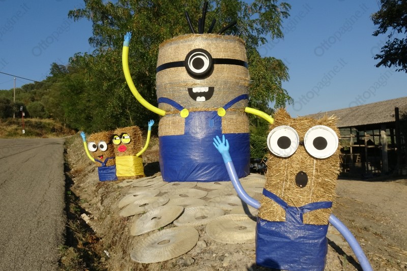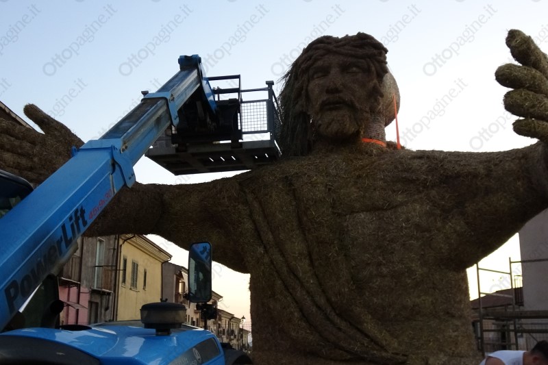 Rotoballe di paglia decorate, casette, il volto del grande redentore, solo per citarne qualcuna e fuori concorso anche un'opera dedicata alla Palestina, all'ingresso del paese, mai come in questo momento di grande attualità.