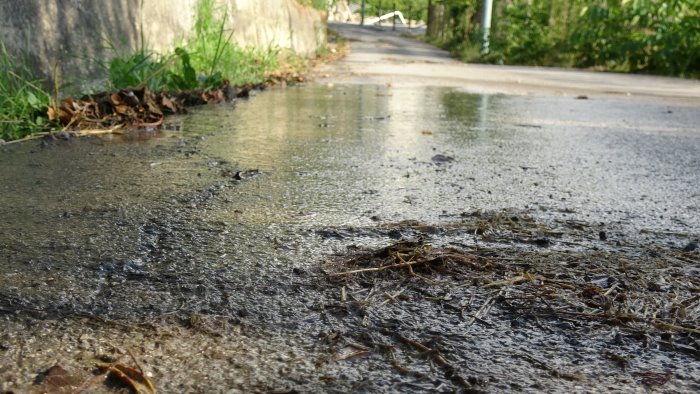 Un'impresa arrivare fino in fondo a causa delle pessime condizioni in cui versa la strada. Buche enormi e voragini. Una tratto davvero impraticabile. A questo si aggiungono le perdite di acqua. Il prezioso liquido finisce in una grata e in una cunetta, lungo un canale. Viene rivolto un appello all'alto calore ad intervenire al più presto.
