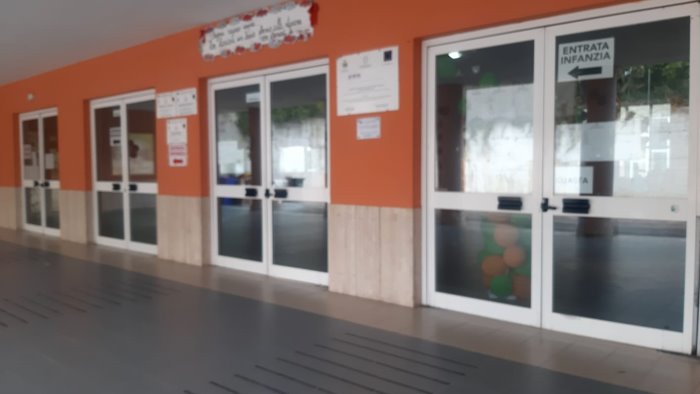 La porta è rotta e andrebbe sostituita - ci dice un genitore - è un anno che stiamo lottando - la chiusura determina una confusione notevole all'uscita di scuola.