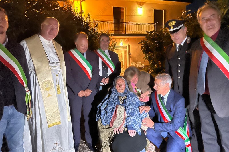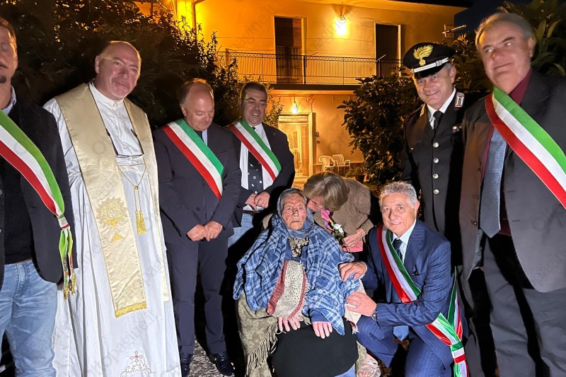 A guidare la marcia sacra il sindaco Vito Di Leo, e il parroco, don Alberico Grella, e altri autorevoli espo nenti delle amministrazioni del circondario presenti all'evento religioso che hanno deciso di omaggiare la signora, salutandola con tanto di inchino. «È una donna esemplare - ha detto Di Leo-, un esempio per tutti, amante della famiglia, custode delle tradizione autentiche e genuine».