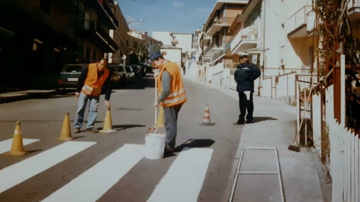 La foto che vedete in questo articolo risale agli anni 90. Ad eseguire la segnaletica stradale orizzontale in via fontananuova ad Ariano Irpino sono due operai dell'ufficio tecnico comunale Rosario Vernacchia e Pino Albanese, diretti dal compianto Nino Dall'Occo, sotto l'occhio "vigile" dell'allora appuntato Giovanni Damiano. Strisce pedonali autoprodotte, degne di essere chiamate tali con tanto di vernice vera ed eseguite rigorosamente a mano. Nulla a che vedere con quelle attualmente presenti su molte strade, invisibili o a metà. Su quest'ultimo particolare, ci è stato comunicato proprio che sono da considerarsi nulle.