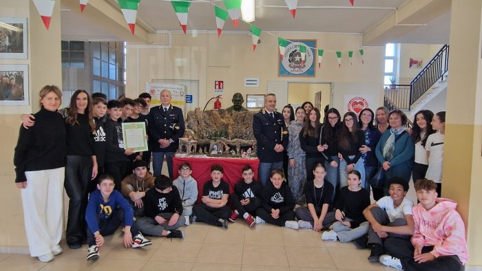 Alla presenza dei docenti coinvolti nella progettazione e realizzazione dell’opera, l'ispettore Angelo Lanno e il vice questore Giulio Masini del locale commissariato di polizia, hanno consegnato agli studenti l’attestato, dando lettura di una motivazione ampia e articolata, che ha sottolineato l’impegno, la creatività e la capacità dei ragazzi di interpretare il Natale come tempo di legalità, servizio, rispetto delle regole e solidarietà.