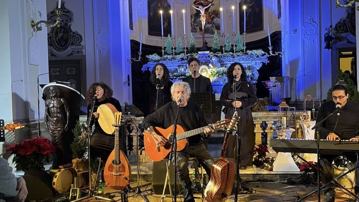 Chiesa di Santa Maria Maggiore gremita e grande partecipazione emotiva del pubblico per il concerto "Qualcuno sulla Terra", scritto ed interpretato dal grande Eugenio Bennato, accompagnato dal gruppo "Voci del Sud" con la partecipazione straordinaria e travolgente di Pietra Montecorvino.