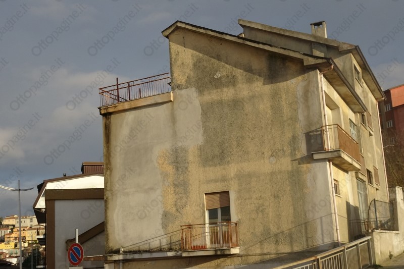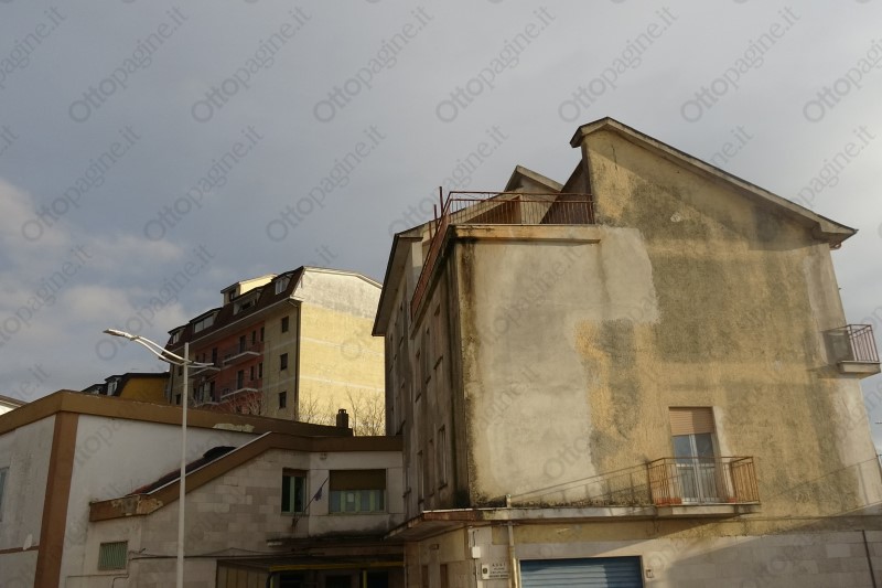 Pietre in caduta libera da un vecchio edificio di proprietà di poste italiane, accanto agli uffici del servizio recapito.
