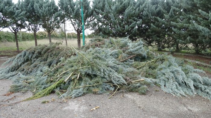 Quei rami di una una folta e bellissima siepe tagliati e rimasti a terra da mesi nel piazzale che porta a Biogem in località Camporeale ad Ariano Irpino.