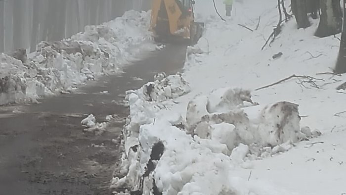 Neve, protezione civile in azione a Montevergine con bobcat e spalaneve