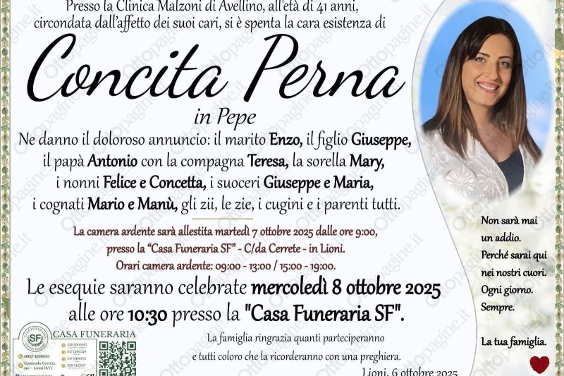 Concita Perna domani i funerali