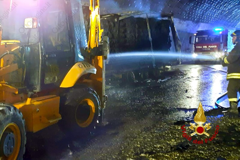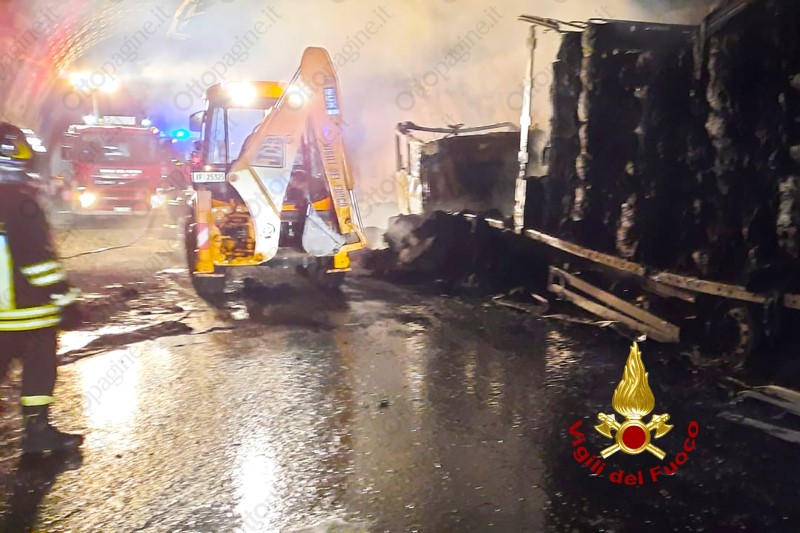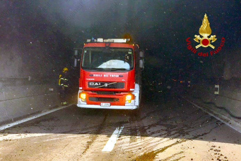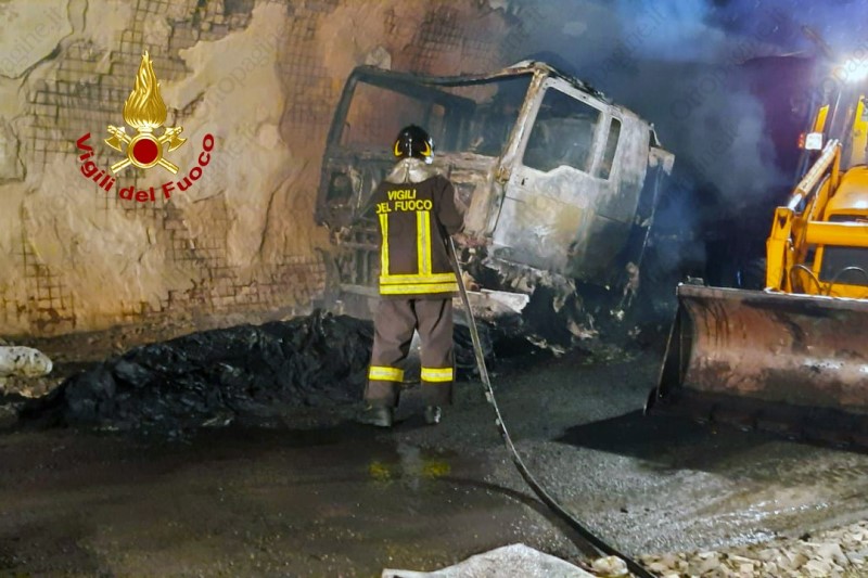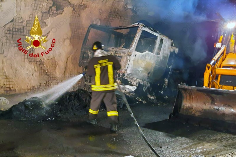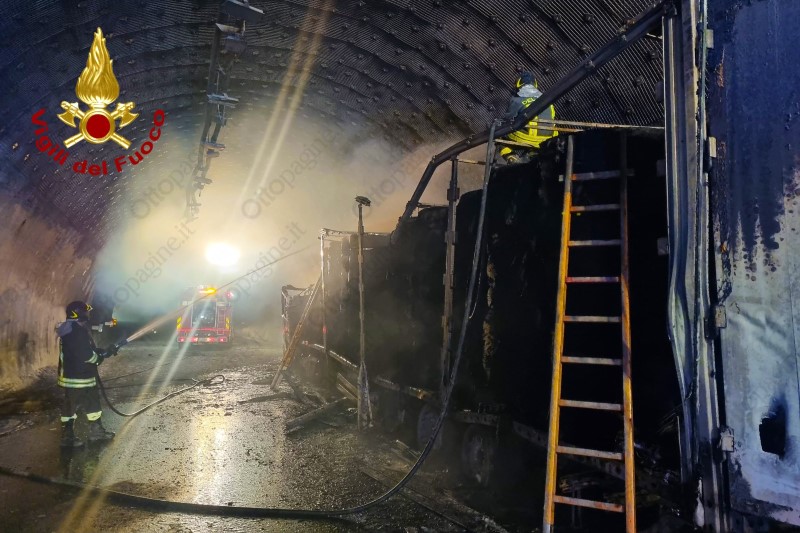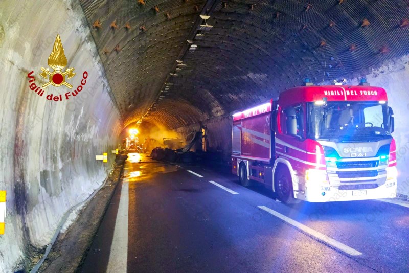 Autoarticolato in fiamme in galleria sull'A16 Napoli-Canosa