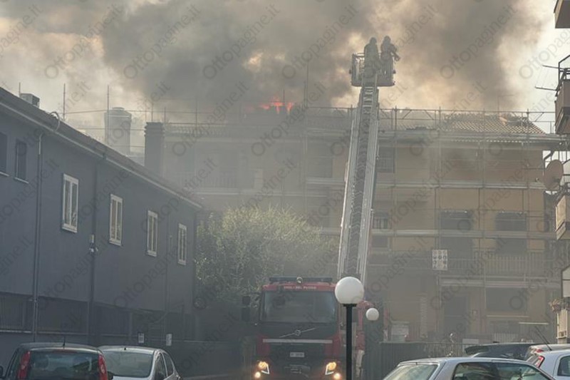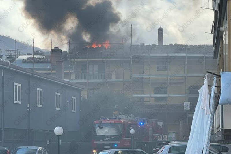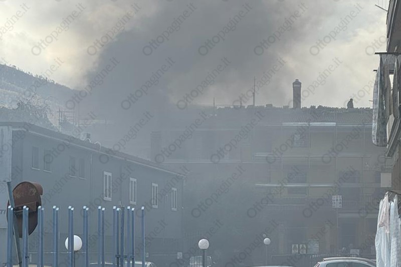 Nuvola di fumo nero e fiamme ad Alvanella, paura in un palazzo