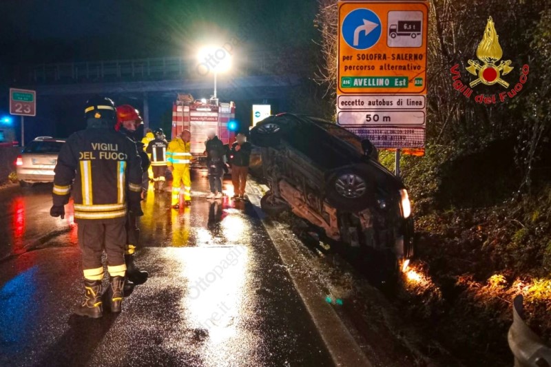 Atripalda, auto si ribalta nei pressi dell'ingresso del raccordo: caos traffico