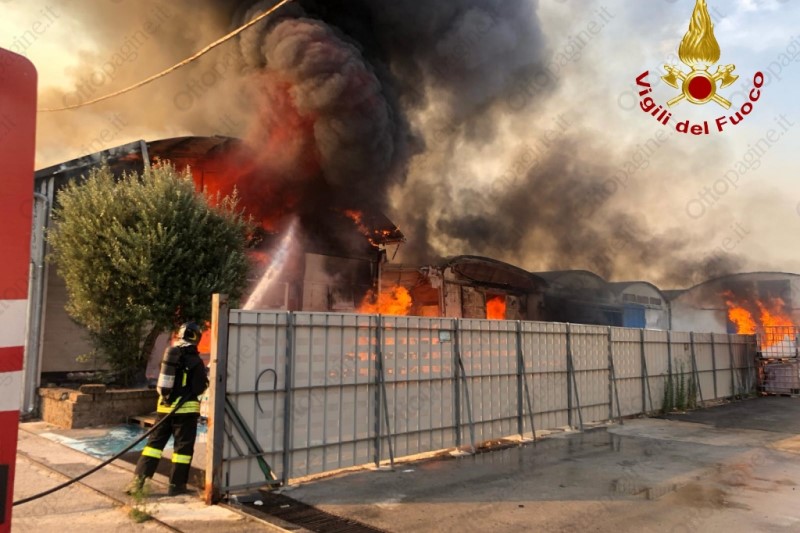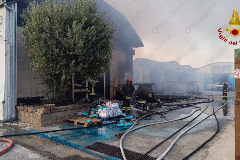 Incendio capannoni deposito di detersivi a Monteforte Irpino