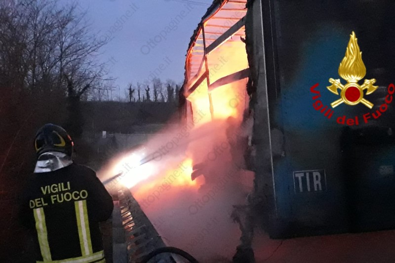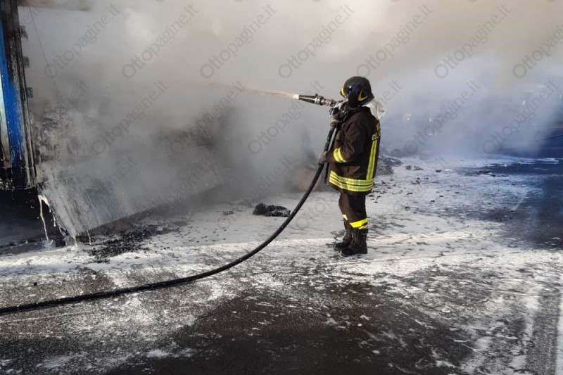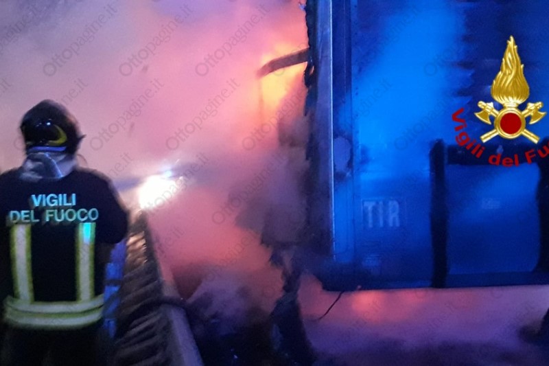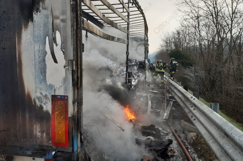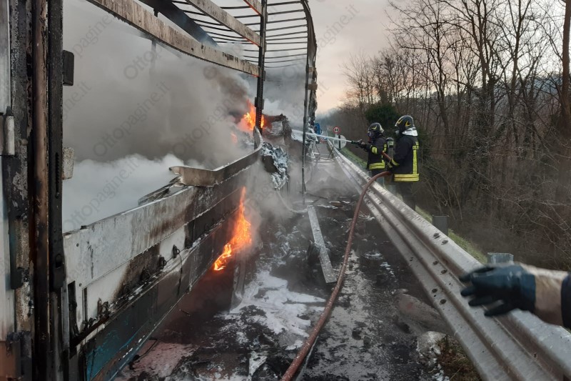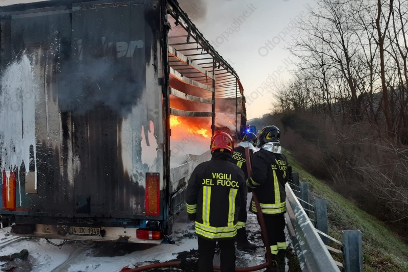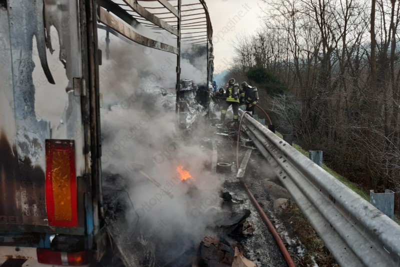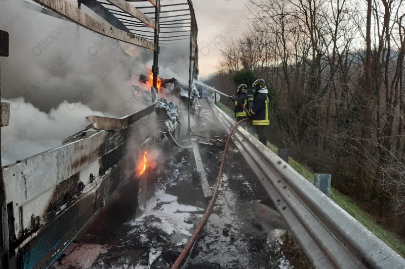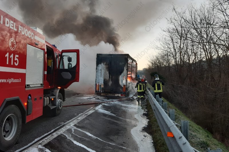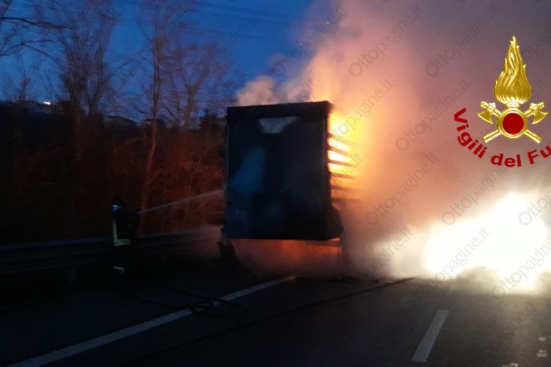 Autoarticolato in fiamme in autostrada, traffico in tilt