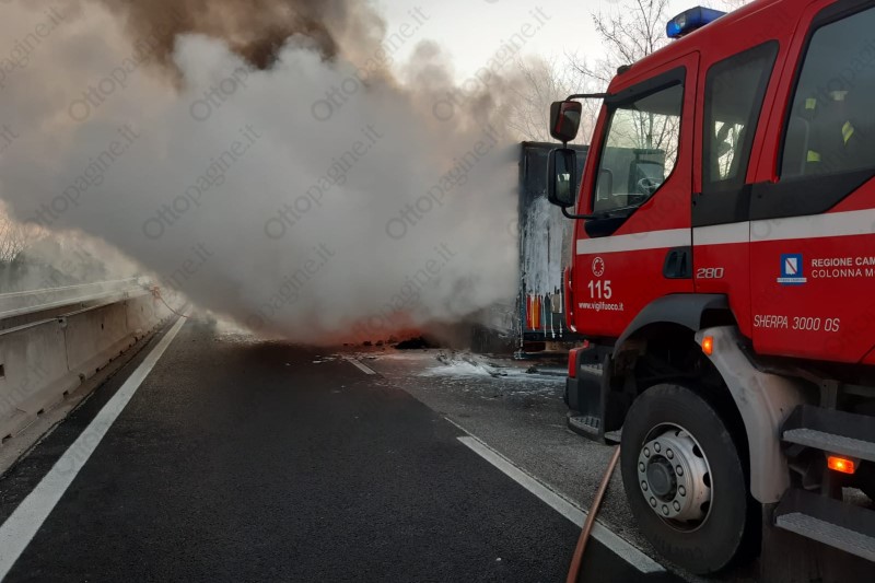 E' accaduto lungo il tratto dell'A16 tra Avellino Est e Benevento. Vigili del fuoco in azione