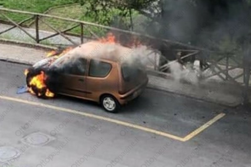 Auto in fiamme vicino alla villa comunale ad Ariano
