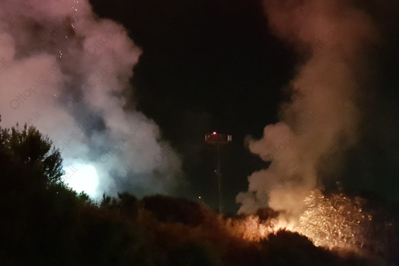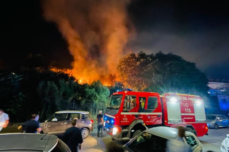 Le fiamme si sono velocemente propagate a ridosso del Pala Del Mauro