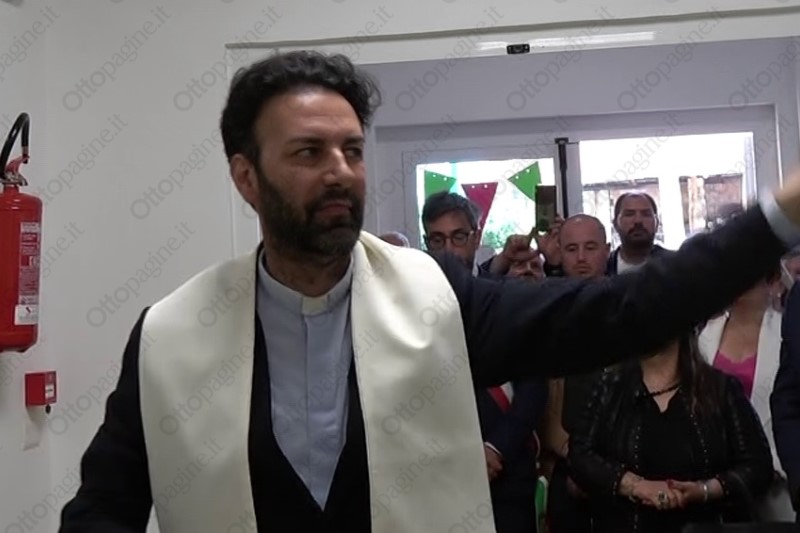 Don Antonio Ventulli benedice l'asino nido Orneta ad Ariano